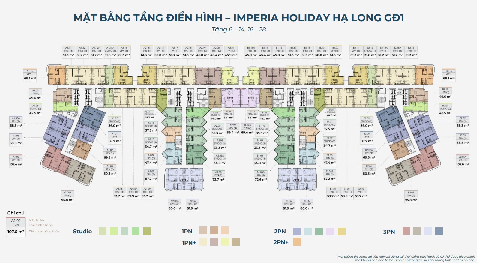 - Loại hình: Căn hộ Studio, 1PN+1, 2PN, 3PN và Shophouse